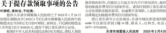 根据《中华人民共和国民法典》有关规定,债权人领取提存物的权利,自提存之日起五年内不行使而消灭,提存物扣除提存费用后归国家所有。请及时到浙江省乐清市公证处领取该提存款项。如逾期不来领取,上述款项将按法律规定扣除提存费用后归国家所有。