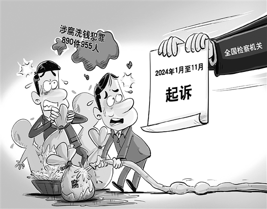 最高人民检察院职务犯罪检察厅厅长张晓津2月12日介绍检察机关惩治涉腐洗钱犯罪有关情况时表示,检察机关加强反洗钱协作配合,增强惩治合力,2024年1月至11月,全国检察机关起诉涉腐洗钱犯罪890件955人,同比分别上升37.6%、39.4%。