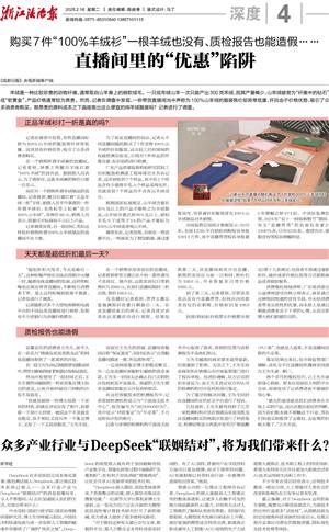 调查至此,记者发现,目前在一些直播平台,一些商家为了增加销量,通过虚假宣传,用普通针织服装冒充100%山羊绒制品对外销售。
