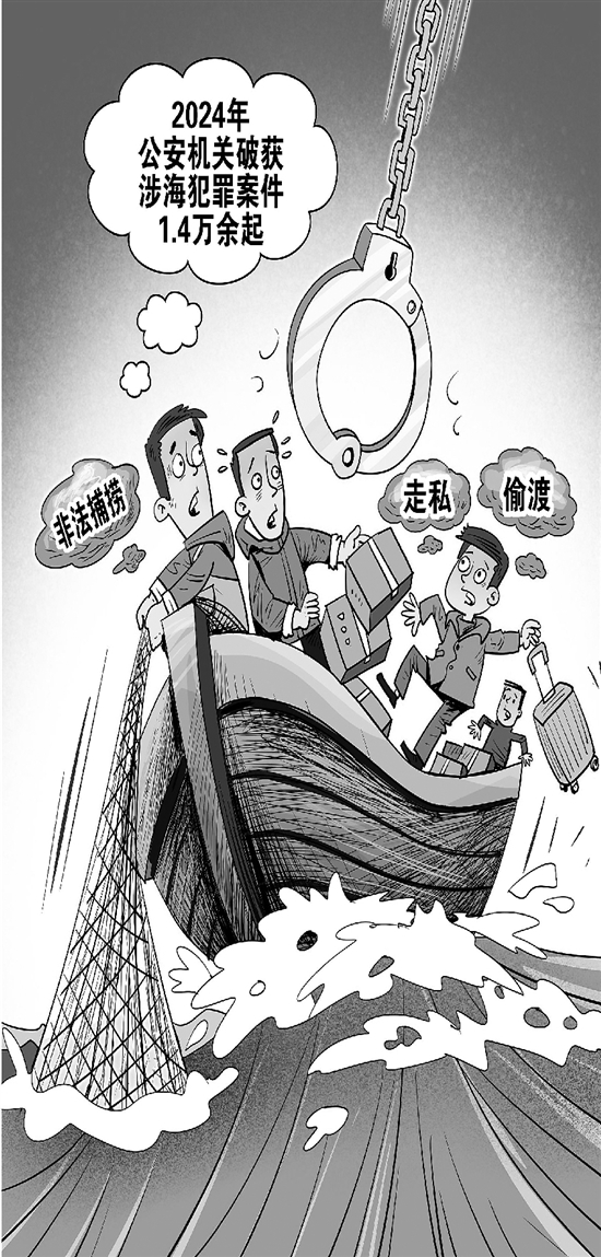 记者2月18日从公安部获悉,2024年,公安机关坚决筑牢沿海治安防线,全力维护沿海安全稳定,全年累计破获各类涉海犯罪案件1.4万余起,排查化解沿海风险隐患2万余处。
