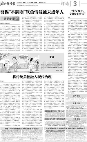 浙江法治报 评论 00003 警惕“举牌圈”软色情侵蚀未成年人 2025-02-21 27332731 2 2025年02月21日 星期五