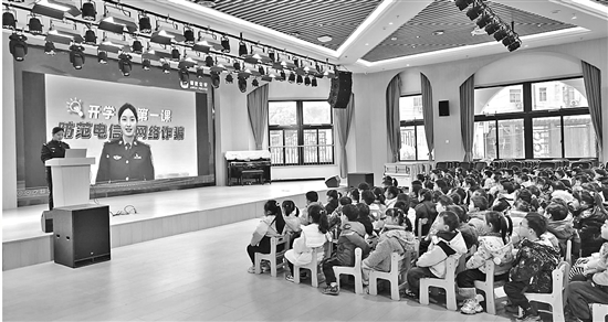 近日,诸暨市公安局店口派出所社区民警魏泽婷走进店口镇江南幼儿园,开展安全教育宣传活动。魏泽婷用通俗易懂的语言和PPT演示等方式,向孩子们介绍了反诈、预防校园霸凌、文明出行等知识,为孩子们送上“开学安全大礼包”。 通讯员 杨晶