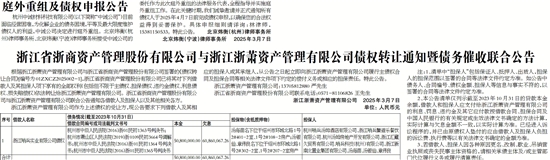 浙江省浙商资产管理股份有限公司与浙江浙萧资产管理有限公司债权转让通知暨债务催收联合公告