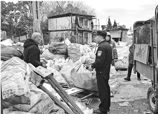 近日,台州椒江公安洪家派出所民警走进废品收购站开展安全检查,并向收购站经营者讲解相关法律法规知识,提高他们的安全意识和守法意识,进一步规范废品收购站管理、有效堵塞销赃渠道。 通讯员 何文斌 摄