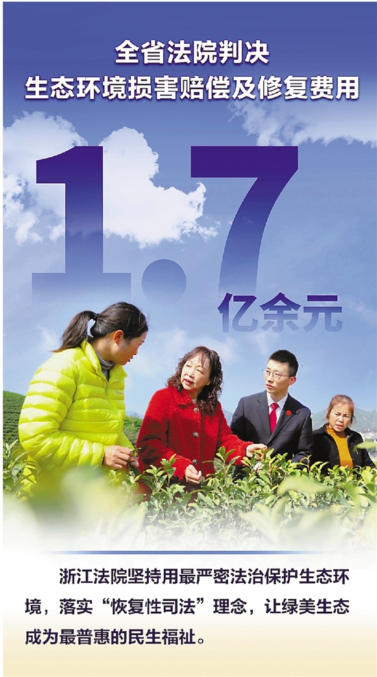 生态安全一直是平安浙江建设的重要一环。作为全国首个生态省,浙江已建成49个国家生态文明建设示范县(市)、14个“绿水青山就是金山银山”实践创新基地,数量位居全国第一。针对环境资源违法和犯罪行为,浙江法院始终坚持用最严密法治保护生态环境,注重通过司法审判推动受到破坏的生态环境及时修复。1.7亿余元“生态金”中,不仅藏有司法利剑守护绿水青山的坚定决心,还有以法治思维破解“生态治理难题”的实践智慧。