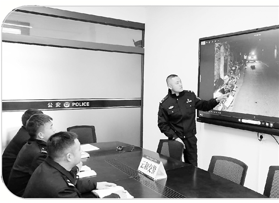 | 王朱静与同事对事故现场的视频进行分析研判 |