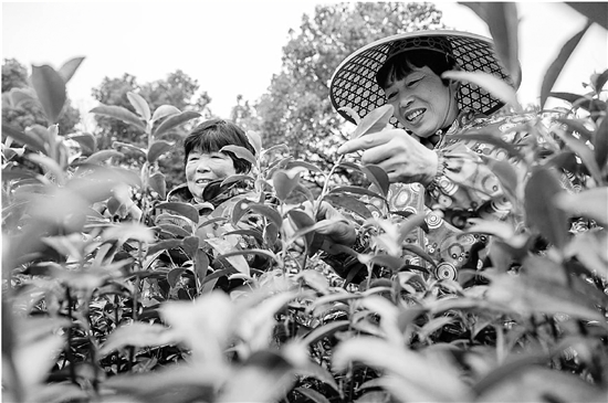 | 3月13日,长兴县水口乡龙山村,茶农忙碌采摘头茬紫笋茶。当天,长兴县的早生品种紫笋茶正式开采,干茶最高售价约3800元/斤。该茶叶上市时间都比普通春茶早一周,今年阳光充足,茶叶长势迅猛,开采时间也比往年提早3天左右。 谭云俸 摄 |