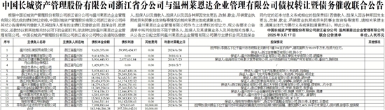 中国长城资产管理股份有限公司浙江省分公司与温州莱恩达企业管理有限公司债权转让暨债务催收联合公告