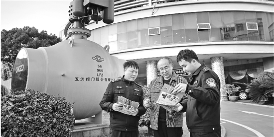 近日,温州龙湾公安永中派出所民警走访辖区企业,通过面对面耐心讲解安全生产知识,强化企业负责人的责任意识,为企业敲响安全警钟。 通讯员 项绍雄 摄