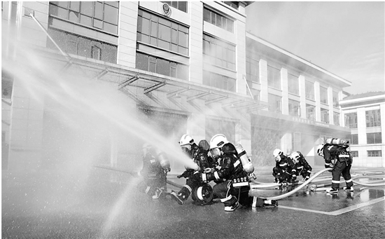 近日,绍兴市消防救援支队创新开展“大跨度大空间火场快速分割操”项目训练,让参训队员在处置大跨度大空间火灾扑救过程中熟练掌握无后坐力水枪、支架式水球枪、手持式水球枪、水幕发生器交替变换进攻技术,灵活运用技战术措施,提高协同作战能力。