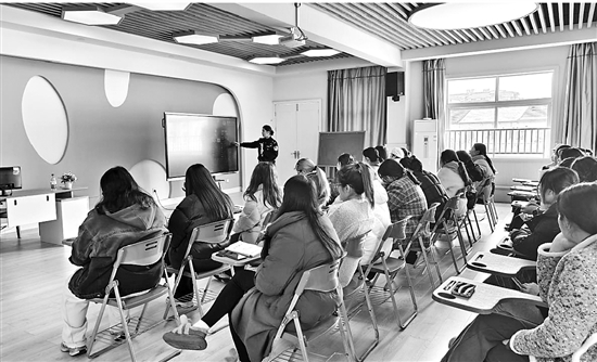 近日,诸暨市公安局店口派出所社区民警魏泽婷走进店口镇明诚幼儿园,为全体教职工送去一堂反诈课。民警通过展示反诈PPT、观看视频、发放宣传单等形式,向教职工讲解了电信网络诈骗的类型和套路,提醒教职工“不听、不信、不转账”。 通讯员 杨晶