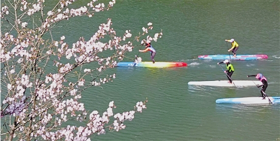 3月23日,2025年浙江省第六届救生桨板大赛在磐安樱花公园景区双溪水域开赛,吸引省内16支队伍260多名桨板运动员参加。这不仅是一场速度的竞赛,更是一场拯救生命的演练。
