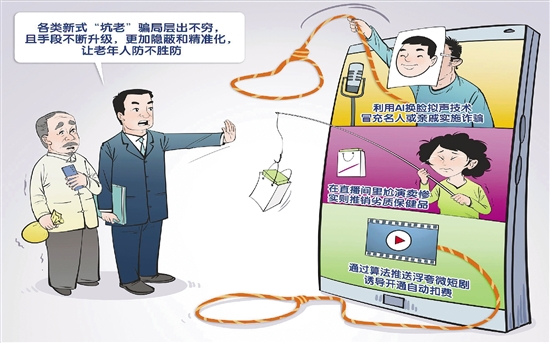 当前,一些不法分子编织的“投资返现”、“权威”背书、熟人拉拢“坑老连环套”在网络助力下更具欺骗性和传播效能,让一些老年人防不胜防。