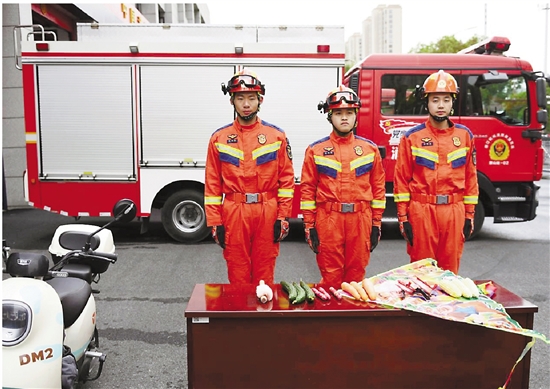 实验开始前,为确保实验过程中各模拟物品能精准“撞”上风筝线,消防员将风筝线两端固定在离地面约1.7米的两根杆子上,并穿戴好全套防护装备,防止被“误伤”。