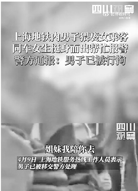 女子地铁上被猥亵,同车女生见状挺身而出帮忙报警,并安慰该女子:“我拍了视频,姐妹我陪你去。”4月9日,上海市公安局城市轨道和公交总队官方微博通报,4月8日18时30分许,姚某(男,41岁)在地铁1号线列车车厢内,对一名女乘客实施猥亵行为,后被周围乘客扭送至公安机关。目前,姚某已被公安机关依法处以行政拘留。