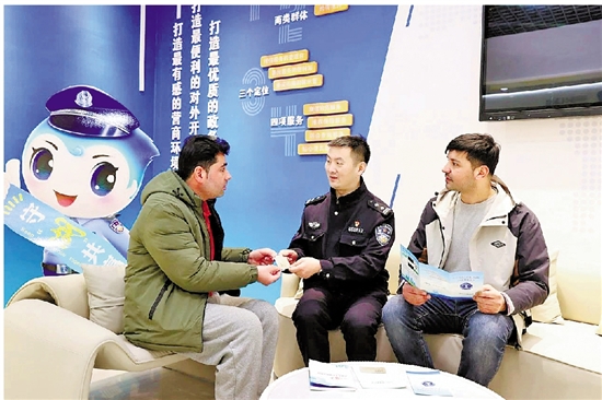“货物出关是否方便、外籍商人入境是否方便……”泰国企业家巴颂提出一系列问题,织南派出所副所长梅文杰一一解答后,还拿出一张“惠企卡”,“来织里做生意,就可办理这张卡,不仅能享受出入境办理绿色通道,还能持卡享受吃住行优惠。”