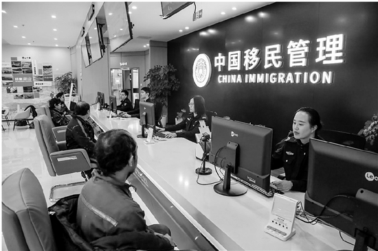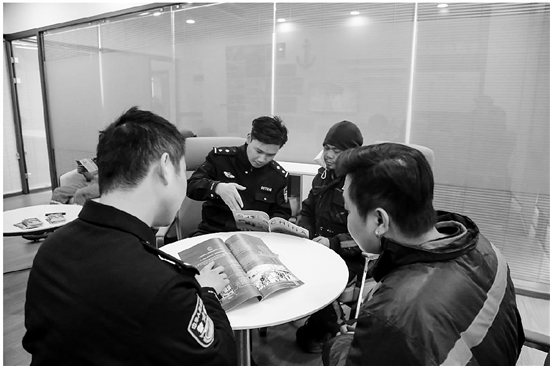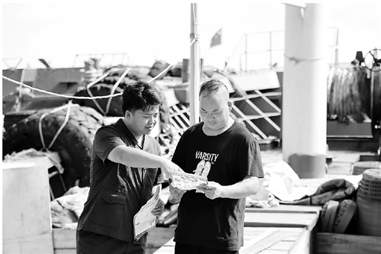 岱山县公安局出入境管理大队民警和舟山出入境边防检查站执勤二队民警一起向国际海员宣传法律法规