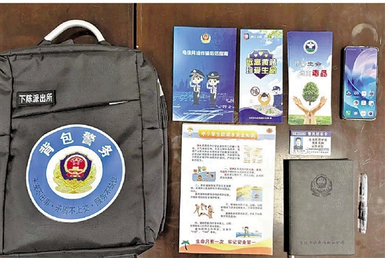 一部警务通、一支笔、一本走访笔记本、一叠宣传材料、一沓警民联系卡,满满装了一包,这就是下陈派出所社区民警的“警务背包”。