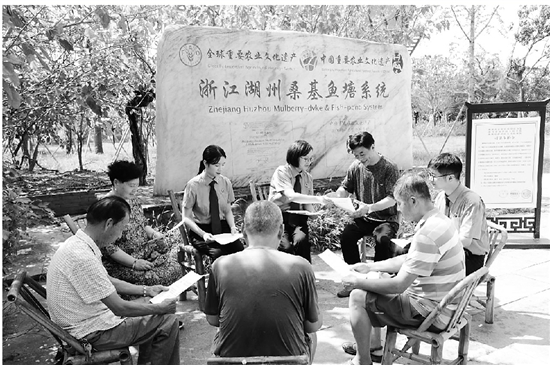 | 南浔检察院检察官在桑基鱼塘系统核心保护区荻港村开展普法宣传 |