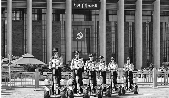 行走在南湖景区内外,人们一定不会错过一道风景线——“红船义警”,他们是南湖畔民警的可靠臂膀。警力有限,民力无限,发动群众、依靠群众是七一派出所守护南湖核心区域绝对安全的重要法宝之一。南湖公安现拥有13支专业义警队,人员超万人。每天,“红船义警”风雨无阻夜巡南湖;每周,在南湖畔都能看到水上救援义警队的身影;每月,无人机义警队会准时到来……警民携手又给南湖加上了一道安心锁。