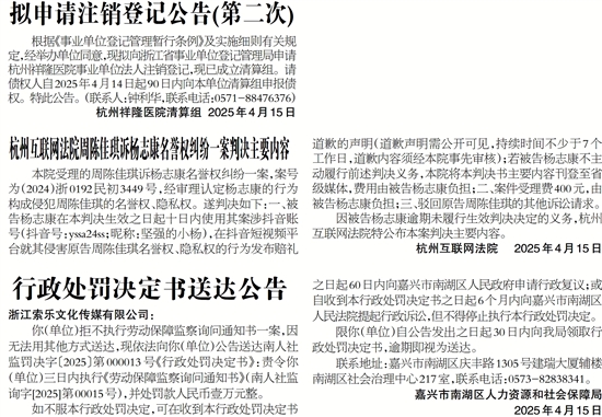 杭州祥隆医院清算组 2025年4月15日
