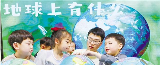 4月14日,湖州市长兴县开发区实验幼儿园开展“学习地球知识 迎‘世界地球日’”主题教育活动。孩子们学习了废物利用、垃圾分类等知识,提升环境保护意识。 陈海伟 摄