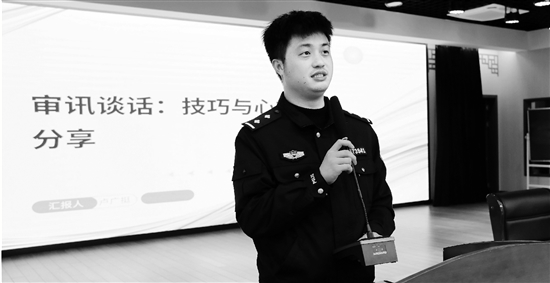 今年以来,临海市公安局杜桥派出所每周开展“杜警讲堂”,提升队伍政治素养、执法水平和履职能力。图为近日,民警卢广挺上台分享工作经验。