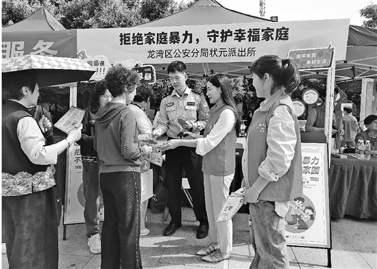4月16日,温州龙湾公安状元派出所民警联合人大代表、律师等,共同开展反家暴宣传活动,向居民普及反家暴相关知识,并解答居民相关疑问,提升居民对家庭暴力的认知和抵制能力。