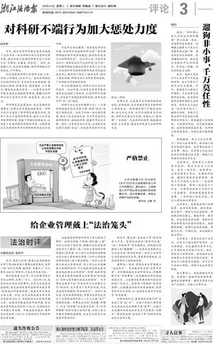 浙江法治报 评论 00003 给企业管理戴上“法治笼头” 2025-04-22 27426408 2 2025年04月22日 星期二