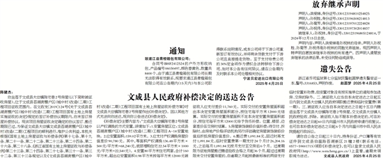 文成县人民政府补偿决定的送达公告