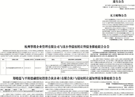 郑晓儒与平阳德融股权投资合伙企业(有限合伙)与债权转让通知暨债务催收联合公告