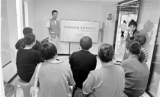 近日,长兴县龙山街道学苑社区网格员来到小区居家养老中心,开展反诈宣传活动,通过发放宣传资料、现场讲解等方式,向居民普及电信网络诈骗的常见手段、特点和防范措施,提醒居民提高警惕,遇到可疑情况及时报警。 通讯员 朱学