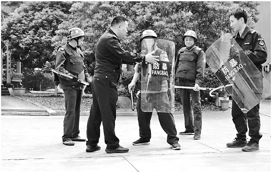 民警分析了当前校园安全形势,重点讲解视频监控、一键报警器等设备的使用要点。现场演示了防暴器械的操作方法,指导安保人员掌握应急处置技能。