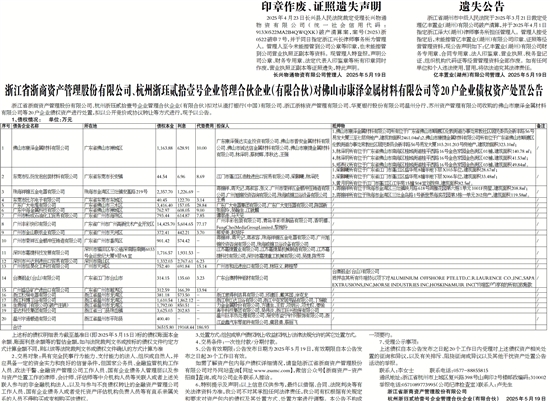 浙江省浙商资产管理股份有限公司、杭州浙珏贰拾壹号企业管理合伙企业(有限合伙)对佛山市康泽金属材料有限公司等20户企业债权资产处置公告