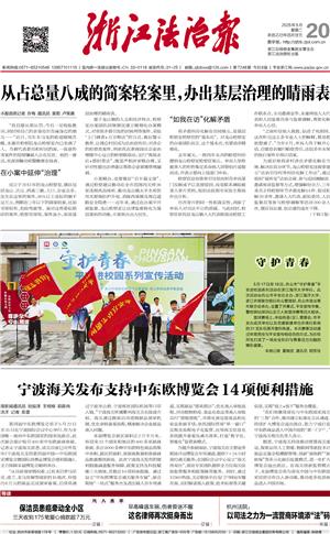 新闻热线:0571-85310548 13857101115 | 国内统一连续出版物号:CN 33-0118 邮发代号:31-25 | 邮箱:zjfzbxw@126.com | 第7248期 今日8版 | 平安浙江网:www.pazjw.gov.cn