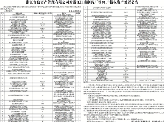 浙江台信资产管理有限公司对浙江江南制药厂等91户债权资产处置公告