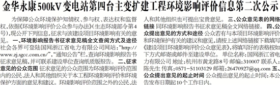 金华永康500kV变电站第四台主变扩建工程环境影响评价信息第二次公示