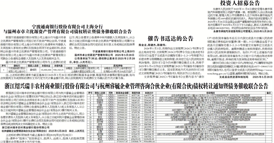 根据宁波通商银行股份有限公司上海分行与温州市卓立优源资产管理有限公司签订的不良资产转让合同,宁波通商银行股份有限公司上海分行将其对公告清单所列借款人及其担保人享有的主债权及担保合同项下的全部权利,依法转让给温州市卓立优源资产管理有限公司。宁波通商银行股份有限公司上海分行与温州市卓立优源资产管理有限公司联合公告通知各借款人及担保人以及其他相关各方。