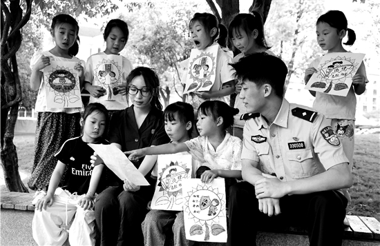 画笔沙沙作响,干警与孩子们共同执笔,在法治绘纸上涂上斑斓色彩。一张张画着法律小知识的涂鸦,勾勒出孩子们心中公平正义的雏形。 本报记者 郭晓燕 通讯员 林迅雷