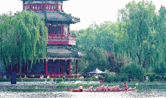 | 5月29日,2025中国大运河文化带京杭对话配套活动“河之端”龙舟赛在北京市西城区什刹海进行,杭州市龙舟队在比赛中。 当日,2025中国大运河文化带京杭对话在北京大运河博物馆开幕。据介绍,活动以“千帆竞发 运河通济”为主题,采用“1+1+5”模式,1个主会场——通州区,1个特色分会场——西城区,东城、朝阳、海淀、顺义和昌平5区作为拓展区,通过“赛、会、展、演、秀”等形式,让市民游客感受大运河的文化魅力,从不同角度展示大运河沿岸城市的文化风情、科技创新及城市风貌。 新华社 鞠焕宗 摄 |