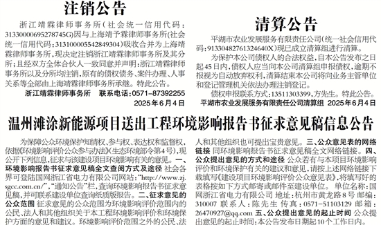 平湖市农业发展服务有限责任公司清算组 2025年6月4日