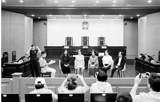 随后,各方代表在法庭开展了一场以真实民间借贷纠纷为原型的“模拟法庭”活动。由法官、律师、无障碍环境促进会代表及残疾人代表共同参与,完整展示了从咨询、立案到庭审、判决、执行的诉讼全流程。每个环节结束后,法官和律师分别进行专业复盘:律师代表就核实律师资质、办理委托手续、诉讼时效、证据留存等事项作出法律提示;法官代表详细讲解了立案、庭审、执行等环节的注意事项及民间借贷纠纷常见法律问题。