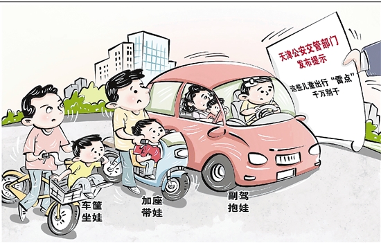 近日,天津公安交管部门发布提示,共享单车车筐坐娃、副驾驶抱娃、电动自行车加座等儿童出行场景都具有安全风险,家长应了解并重视潜在隐患,为孩子守住安全出行防线。