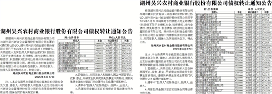 根据湖州吴兴农村商业银行股份有限公司与湖州鑫阳投资有限公司签署的《债权转让协议》,湖州吴兴农村商业银行股份有限公司已于2025年5月29日将其对下列借款人的全部债权(包括但不限于主债权本金、担保债权、违约金债权、损失赔偿权、利息债权)依法转让给湖州鑫阳投资有限公司。湖州吴兴农村商业银行股份有限公司公告通知下列借款所涉及的各借款人、共同还款人、担保人及其他相关各方。特此公告。