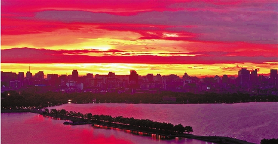 7月22日,日出时的西湖,吸引了众多市民和游客一睹“西湖朝霞”。当日,杭州也迎来了二十四节气的大暑。