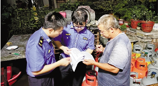 暑期迎来乡村旅游旺季,近日,天台县白鹤镇综合行政执法队对辖区燃气使用单位进行了全面排查,确保用气安全,守护群众“烟火气”安全。通讯员 徐琦 摄