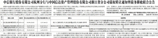 中信银行股份有限公司杭州分行与中国信达资产管理股份有限公司浙江省分公司债权转让通知暨债务催收联合公告