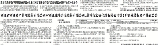 浙江省浙商资产管理股份有限公司拟对浙江兆隆合金股份有限公司、慈溪市宏盛化纤有限公司等2户企业债权资产进行处置,拟以公开竞价方式进行,现予以公告。