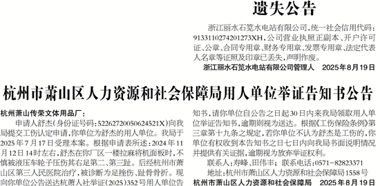 杭州市萧山区人力资源和社会保障局 2025年8月19日