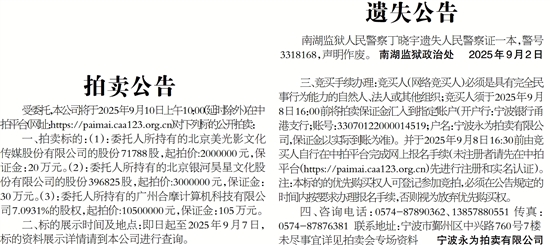 南湖监狱人民警察丁晓宇遗失人民警察证一本,警号3318168,声明作废。 南湖监狱政治处 2025年9月2日